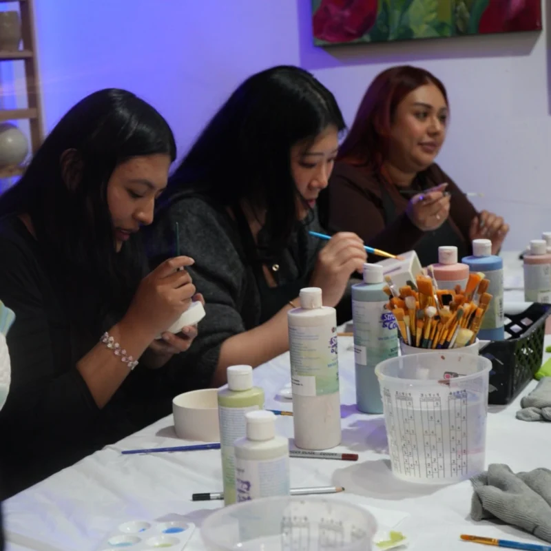 - All Materials Provided: Brushes, paints, bisque pieces, and more.